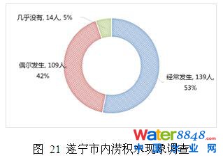 出現(xiàn)較大降雨時(shí),遂寧市內(nèi)澇積水現(xiàn)象的調(diào)查中,53%的受訪者選擇經(jīng)常發(fā)生42%的受訪者選擇偶爾發(fā)生,僅有5%的受訪者選擇幾乎沒(méi)有。