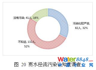 在問(wèn)及您覺(jué)得城市雨水徑流有污染嗎時(shí),32%的受訪者認(rèn)為污染比較嚴(yán)重52%的人不知道,另有16%的人認(rèn)為沒(méi)有污染。