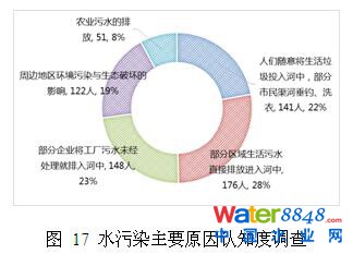 你認(rèn)為影響水污染最主要的原因中,22%的人選擇了人們隨意將生活垃圾投入河中,部分市民渠河垂釣、洗衣28%的受訪者認(rèn)為是部分區(qū)域生活污水直接排放進(jìn)入河中、23%的人認(rèn)為是部分企業(yè)將工廠污水未經(jīng)處理就排入河中、19%的人選擇周邊地區(qū)環(huán)境污染與生態(tài)破壞的影響,另有8%的人認(rèn)為是農(nóng)業(yè)污水的排放。