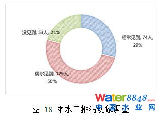 您是否見(jiàn)過(guò)向雨水口丟棄垃圾或傾倒污水的現(xiàn)象調(diào)查中,29%的人經(jīng)常見(jiàn)到、50%的人偶爾見(jiàn)到,另有21%的人沒(méi)見(jiàn)到