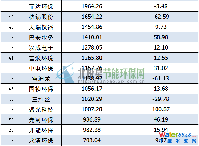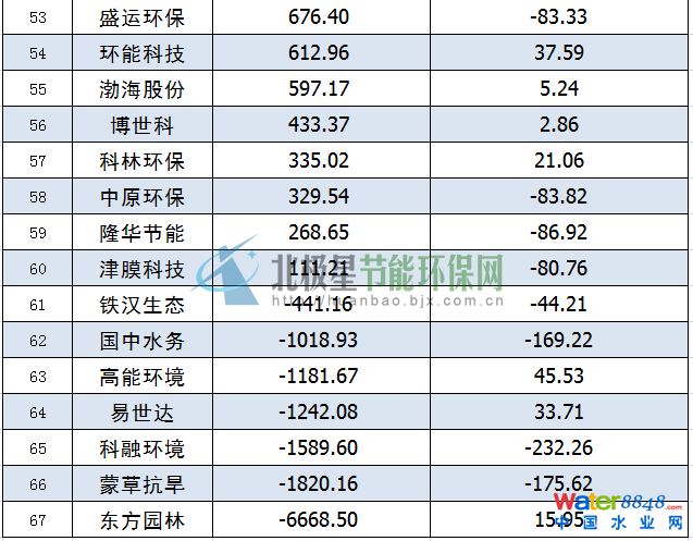 2016年上半年環(huán)保上市公司凈利潤減少匯總表