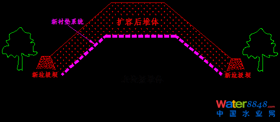 橫向擴(kuò)容技術(shù)是在老垃圾填埋場(chǎng)的附近進(jìn)行橫向擴(kuò)張,新建垃圾壩和對(duì)擴(kuò)張的區(qū)域鋪設(shè)襯墊系統(tǒng),利用原有的老垃圾填埋場(chǎng),同時(shí)進(jìn)行豎向上的加高,使從老垃圾填埋場(chǎng)附近橫向擴(kuò)張較小的占地面積,就能擁有較大的庫(kù)容。