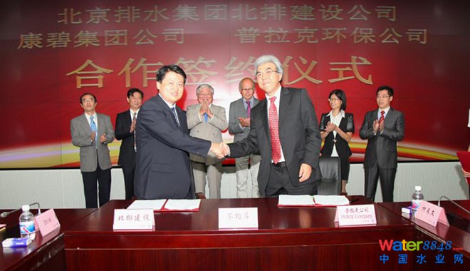 2014年8月26日,北排建設(shè)有限公司與普拉克環(huán)保系統(tǒng)(北京)有限公司簽約北京高碑店污水處理廠污泥高級(jí)消化工程設(shè)計(jì)及咨詢服務(wù)合同,該項(xiàng)目的業(yè)主單位為北京城市排水集團(tuán)有限公司,項(xiàng)目設(shè)計(jì)日處理能力為1358噸(按含固率20%)的混合污泥,是目前國(guó)內(nèi)最大的污泥熱水解+高級(jí)厭氧消化+深度脫水的項(xiàng)目。本項(xiàng)目的工藝方案將采用:污泥濃縮+污泥預(yù)脫水+高溫?zé)崴?厭氧消化+壓濾脫水工藝的綜合處理方案。