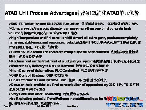 首先和大家介紹ATAD自然式污泥好氧消化技術(shù),在這里也希望把我們的一些最新的進(jìn)展情況跟各位專(zhuān)家、環(huán)保界的同仁們匯報(bào)一下:這項(xiàng)技術(shù)在歐美已有50多座成功運(yùn)行的案例,在去年8-9月份在國(guó)內(nèi)也首次通過(guò)了中試驗(yàn)證。