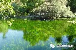 ②景觀水系蜿蜒曲折造成沿岸較長,湖畔樹木密集,每年大量枯枝落葉、花瓣等植物殘體直接或隨地表徑流進入水體,腐爛后造成水體中有機物、氮、磷等增加,為藻類大量生長提供了營養(yǎng)源。
