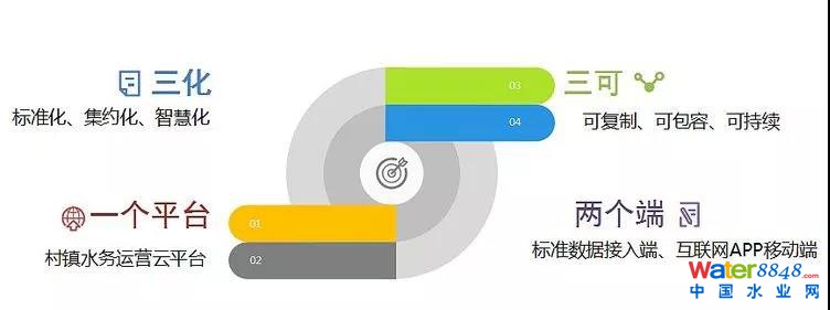 為了解決以上村鎮(zhèn)污水治理面臨的多項難題,華信數(shù)據(jù)提出三化三可,一個平臺兩個端的建設(shè)思路。