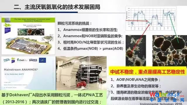 因?yàn)橹性嚨コ蔬_(dá)到60%~70%,但是在不穩(wěn)定的狀態(tài)下可能只有10%~20%。 最近Mark教授提出,顆粒污泥類型的主流厭氧氨氧化今后應(yīng)主要解決運(yùn)行穩(wěn)定性問(wèn)題。