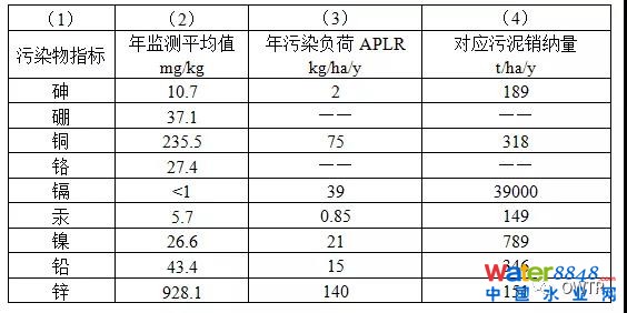 根據(jù)第(4)欄計算結(jié)果對應(yīng)污泥銷納量最小值為149t/ha/y,按照365d/y,200t/d污泥產(chǎn)量計算,需要銷納土地面積490ha,銷納重點監(jiān)測元素確定為Hg和Zn。