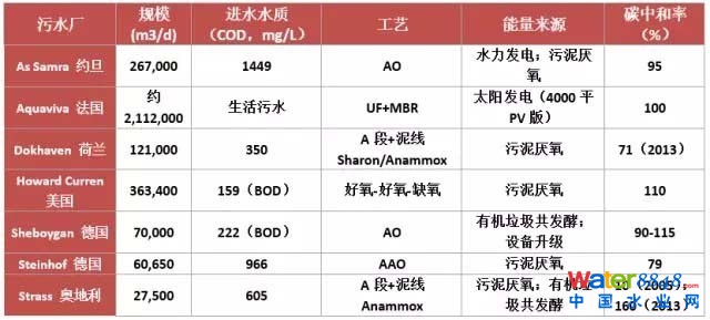 表1 目前國際上實現(xiàn)能量自給/碳中和的污水廠案例