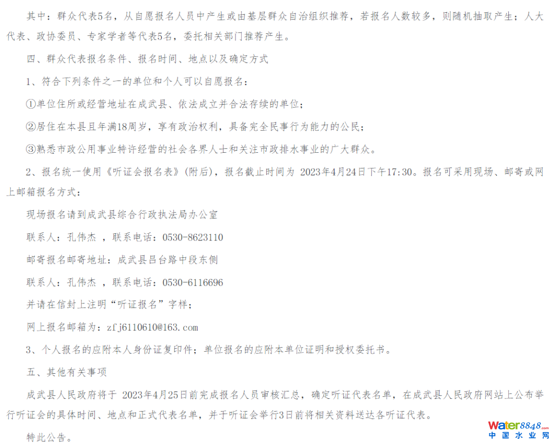 為“擬解除與山東省成武盈源實業(yè)有限公司的特許經(jīng)營權(quán)協(xié)議,取消特許經(jīng)營權(quán)事項并臨時接管”一事,成武縣人民政府決定舉行聽證會。