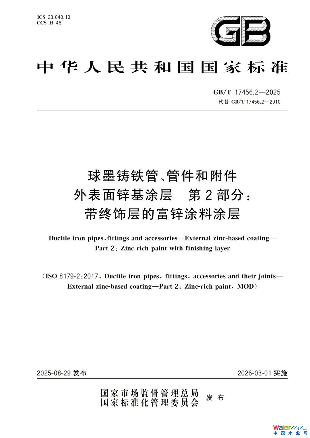 2025年以來(lái),中原環(huán)保參與編制的6項(xiàng)國(guó)家標(biāo)準(zhǔn)陸續(xù)發(fā)布,包括《城鎮(zhèn)雨水污水分流提升井一體化設(shè)備》(GB/T 46265-2025)、《非開(kāi)挖鋪設(shè)用球墨鑄鐵管》(GB/T 46199-2025)、《球墨鑄鐵管自錨接口系統(tǒng) 自錨長(zhǎng)度計(jì)算方法》(GB/T 46322-2025)、《球墨鑄鐵管、管件和附件外表面鋅基涂層 第1部分:帶終飾層的金屬鋅及鋅合金涂層》(GB/T 17456.1-2025)、《球墨鑄鐵管、管件和附件外表面鋅基涂層 第2部分:帶終飾層的富鋅涂料涂層》(GB/T 17456.2-2025)。以上標(biāo)準(zhǔn)分別由全國(guó)城鎮(zhèn)給水排水標(biāo)準(zhǔn)化技術(shù)委員會(huì)、全國(guó)鋼標(biāo)準(zhǔn)化技術(shù)委員會(huì)歸口管理,為城鎮(zhèn)排水系統(tǒng)的優(yōu)化升級(jí)提供了重要的技術(shù)支撐。