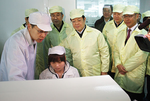王兆國副委員長仔細(xì)聽取了園區(qū)建設(shè)情況匯報,參觀了園區(qū)企業(yè)展品及生產(chǎn)車間,詳細(xì)了解企業(yè)的成本、技術(shù)、市場銷售、工人待遇、投資環(huán)境等情況,并向工作在企業(yè)一線的工人致以新春的慰問和祝福。