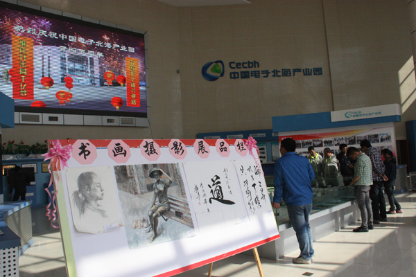 系列活動以當月初征集書畫、攝影作品拉開序幕,通過海報、網(wǎng)站、微信等多種平臺號召園區(qū)全體職工與社會關(guān)注園區(qū)發(fā)展的熱心人士參與首屆中國電子北海產(chǎn)業(yè)園書畫、攝影創(chuàng)作比賽,截止開園5周年前夕,共收到各類作品40余幅。經(jīng)過籌備小組、評委、藝術(shù)老師的認真篩選、對比,評選出了一二三等獎及優(yōu)秀獎若干名,獲獎作品不僅個性鮮明、創(chuàng)意新穎、富有時代美感,而且體現(xiàn)了電子信息行業(yè)鮮明的特色。獲獎作品與以反映園區(qū)建設(shè)歷程、科技成果、領(lǐng)導關(guān)懷為主題的圖板一同于12月30日在園區(qū)向全體職工展出。