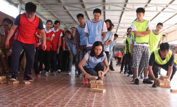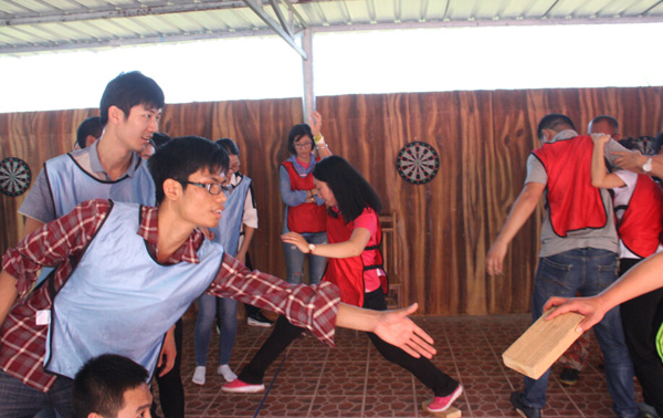 參加人員被隨機(jī)分為三支隊(duì)伍,各隊(duì)經(jīng)過團(tuán)隊(duì)風(fēng)采展示及熱身小游戲互動(dòng)后,初步形成熱烈的氛圍,為接下來的“破冰啟航”、“冰海沉船”、“七巧板”、“真人CS對(duì)戰(zhàn)”四個(gè)拓展項(xiàng)目做準(zhǔn)備。在各自隊(duì)長的帶領(lǐng)下,每一位隊(duì)員都積極發(fā)揮才智,不斷總結(jié)經(jīng)驗(yàn),最終找到了走向成功的方法,完成了任務(wù),從中實(shí)現(xiàn)自我突破,增強(qiáng)自信心與勇氣。培訓(xùn)結(jié)束前,各隊(duì)分別總結(jié)了培訓(xùn)體會(huì),與大家分享了團(tuán)隊(duì)建設(shè)經(jīng)驗(yàn)。