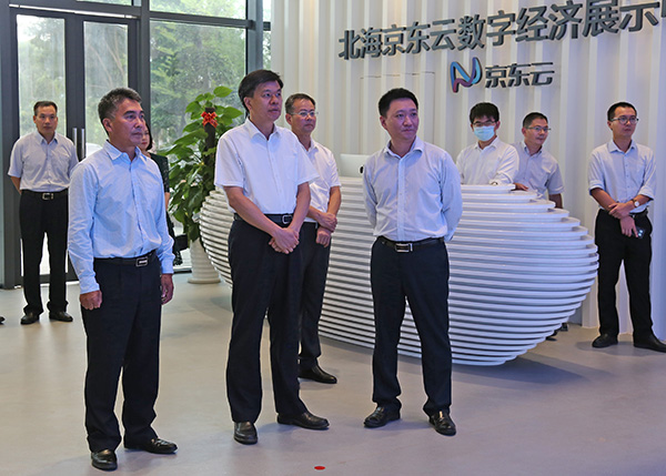 2020年6月11日下午,北海市委書記王乃學(xué)同欽州市委書記許永錁?biāo)暑I(lǐng)的欽州市黨政代表團(tuán)到中國(guó)電子北部灣信息港調(diào)研,參觀了北海京東云數(shù)字經(jīng)濟(jì)展示中心、京東網(wǎng)紅直播基地,聽(tīng)取企業(yè)負(fù)責(zé)人介紹生產(chǎn)經(jīng)營(yíng)等方面的情況。