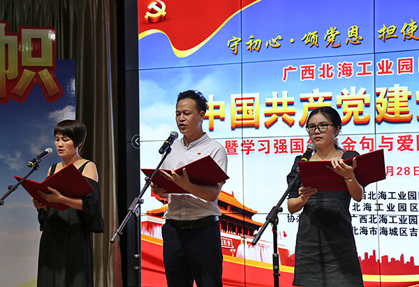 2020年6月28日下午,廣西北海工業(yè)園區(qū)迎慶中國(guó)共產(chǎn)黨建黨99周年暨學(xué)習(xí)強(qiáng)國(guó)每日金句與愛國(guó)詩(shī)詞朗誦讀比賽在工業(yè)園區(qū)舉行。中國(guó)電子北海產(chǎn)業(yè)園聯(lián)合黨支部組織支部黨員及代表參賽,經(jīng)過(guò)精彩角逐,榮獲比賽二等獎(jiǎng)。